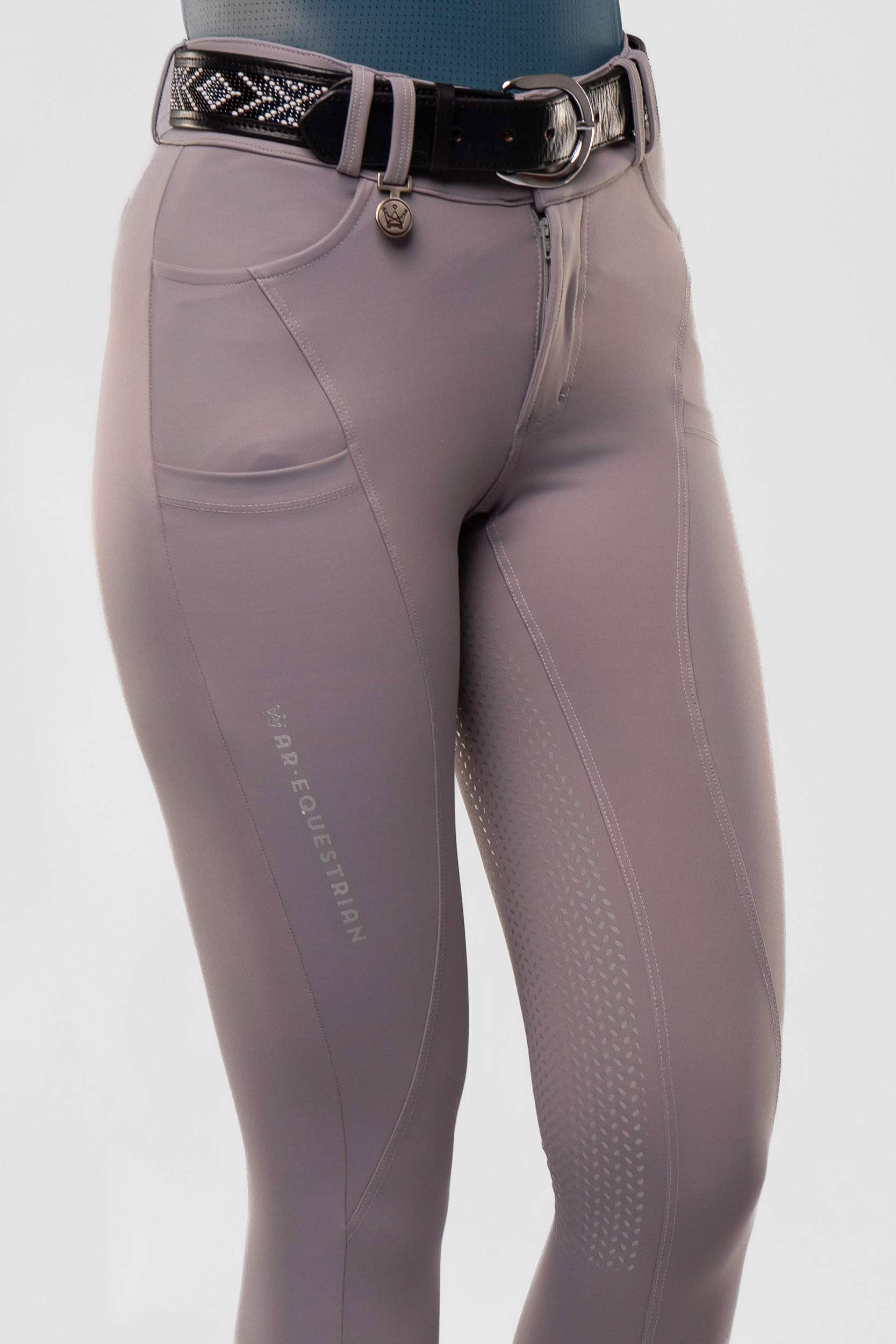 Contém cintura alta, botão, zíper, bolsos frontais e bolsos laterais (ideias para celular), assim como detalhes em bordado e estampa. Possui também full grip suave e discreto que proporciona aderência na sela sem grudar.