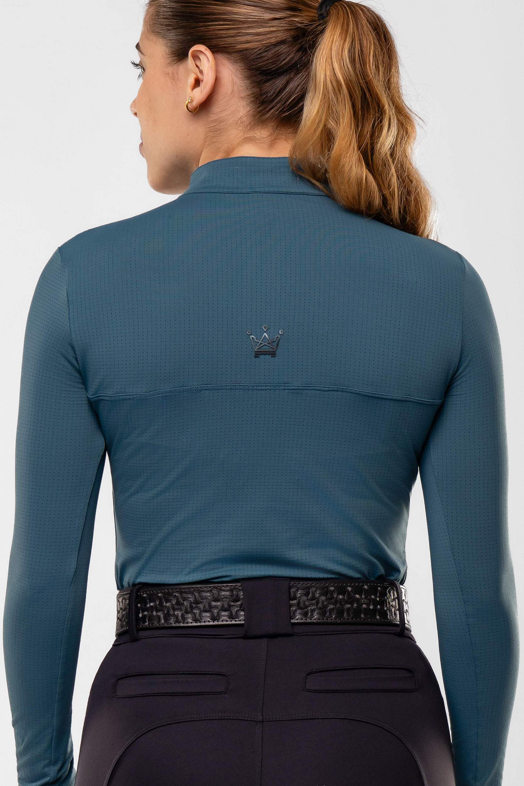 Camisa Hipismo Gola Redonda Painel Manga Longa Petróleo